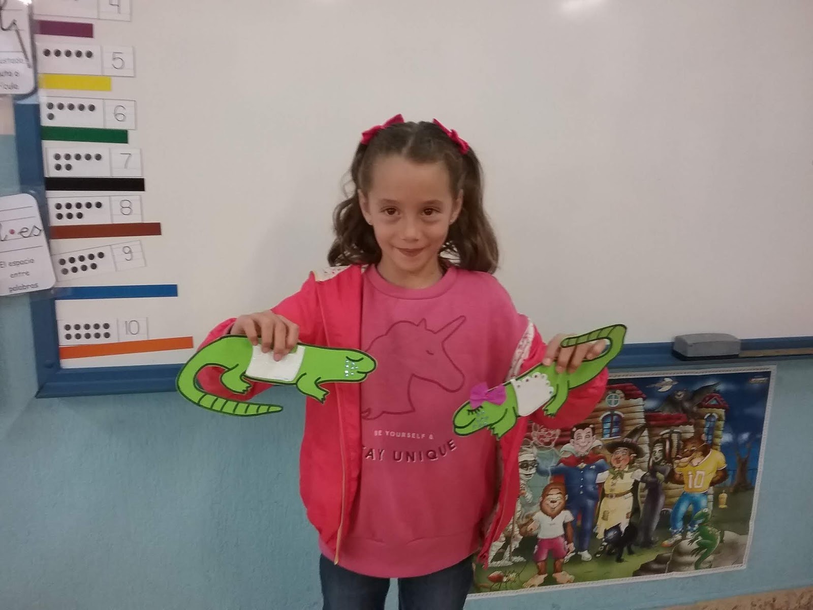 "El lagarto está llorando", de Federico García Lorca. Se lo aprendió de principio a fin e hizo unos fantásticos lagartos de goma eva. Los diamantes que utilizó para emular sus lágrimas nos encantaron a todos.